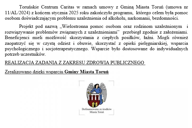 WIELOSTRONNA POMOC OSOBOM ORAZ RODZINOM UZALEŻNIONYM I ROZWIĄZYWANIE PROBLEMÓW ZWIĄZANYCH Z UZALEŻNIENIAMI - ZAKOŃCZENIE PROGRAMU Kategoria #Informacje 17 luty 2026 Następna